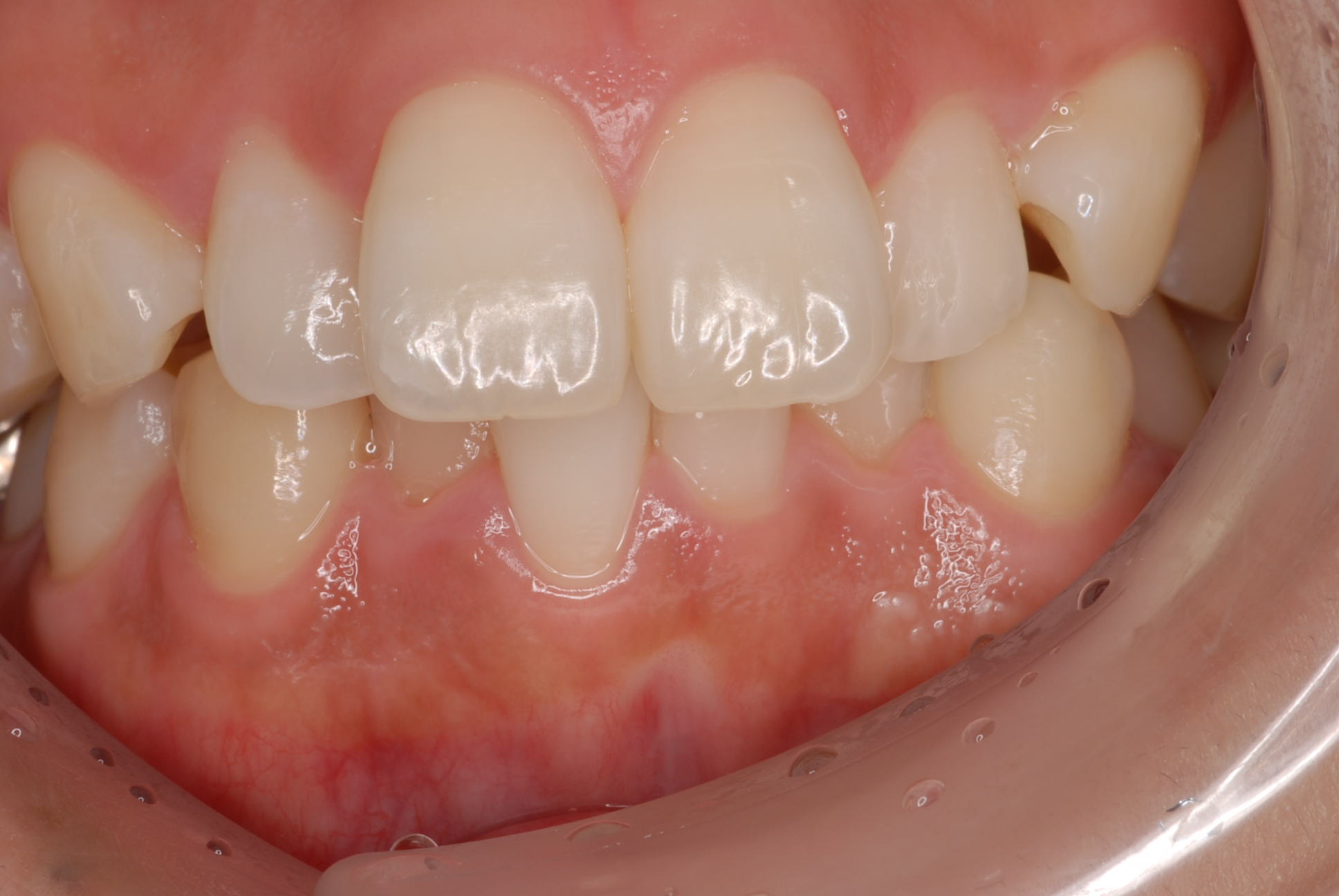 上の左右2番目の歯が内側にたおれているのをきれいにしたいという患者さんでした。