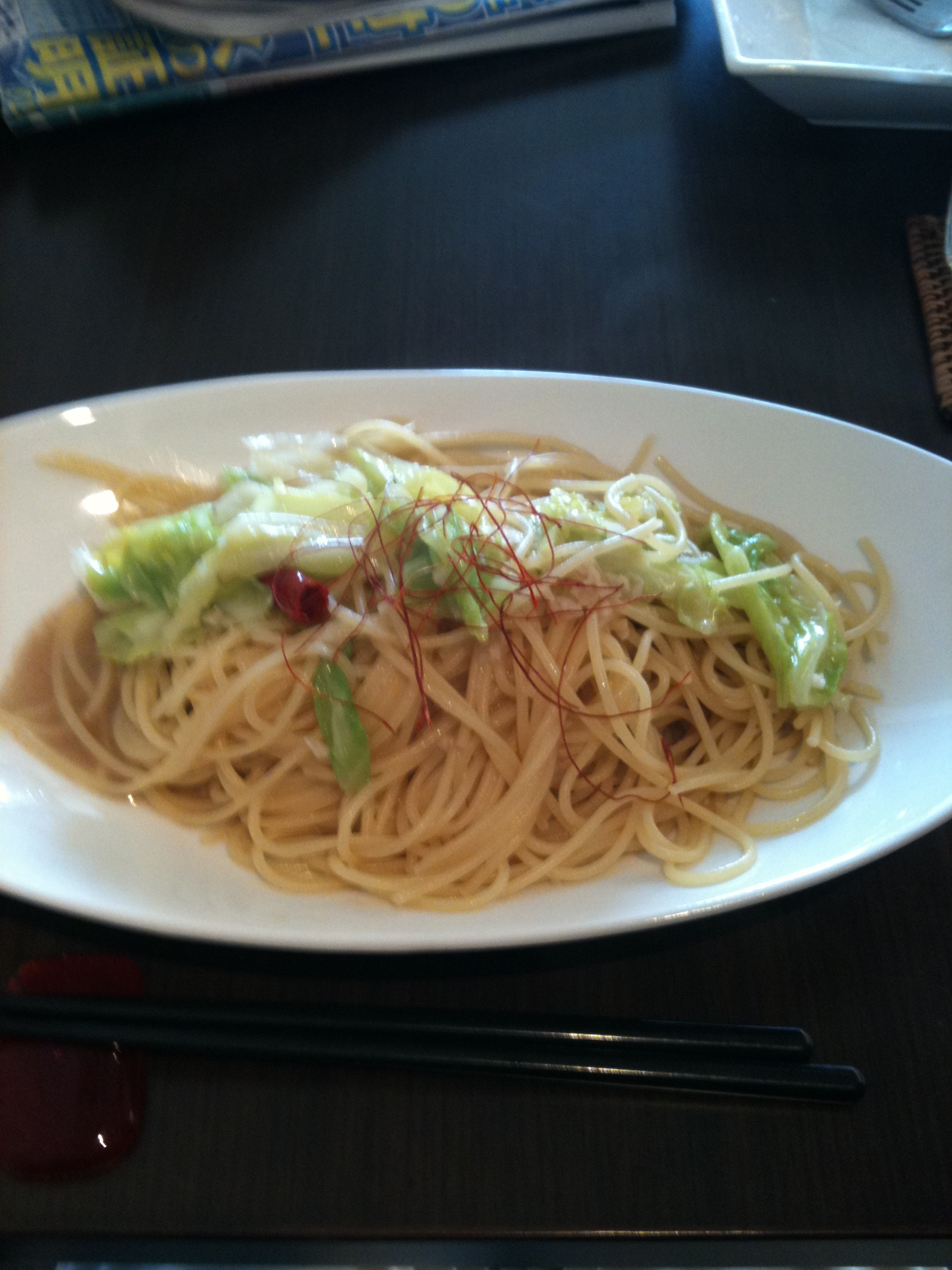 今日のランチは キャベツとアンチョビのパスタでした。(*・ω・)ノ