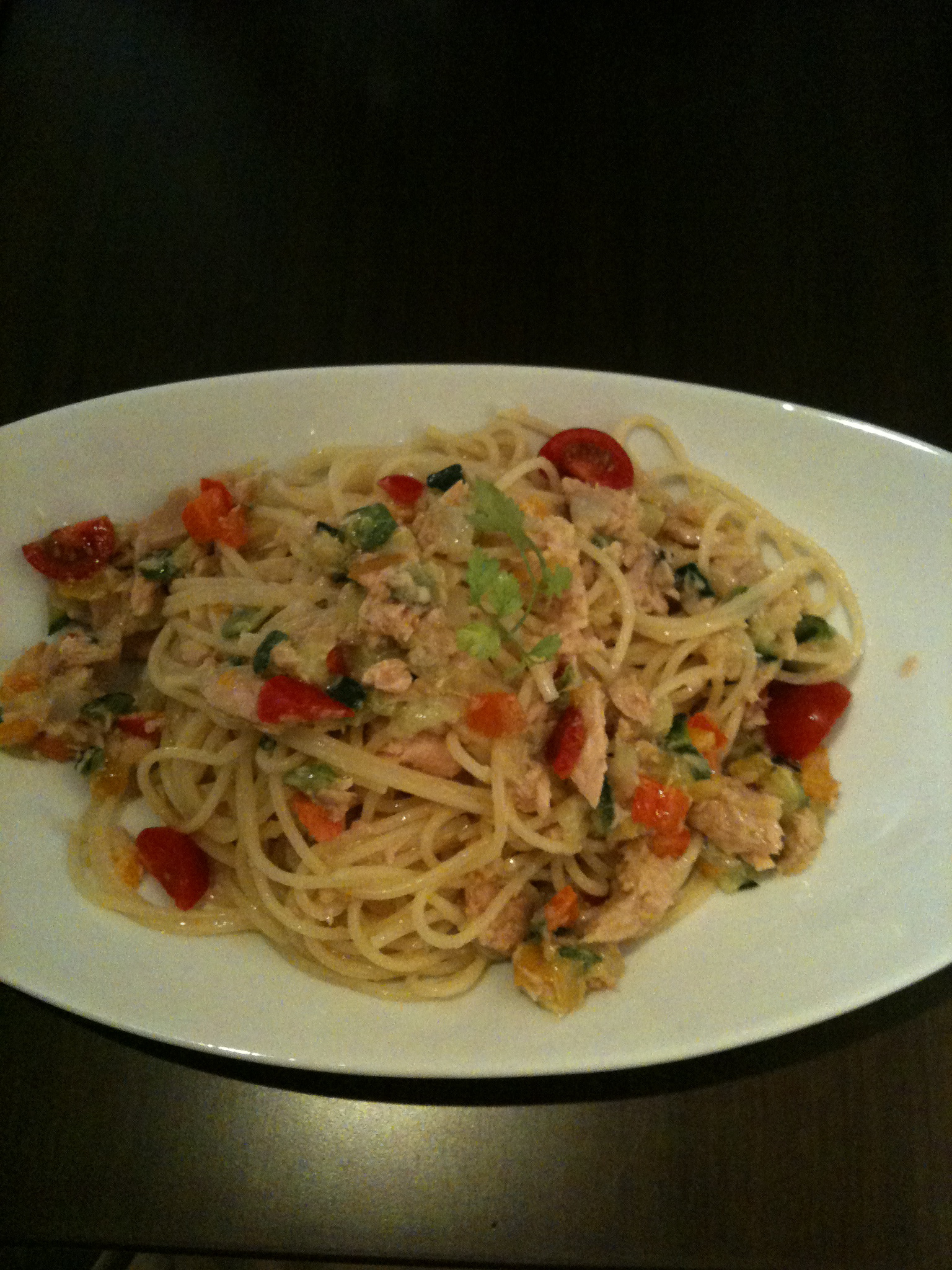 今日は夏野菜とツナの冷製パスタですd(^_^o)