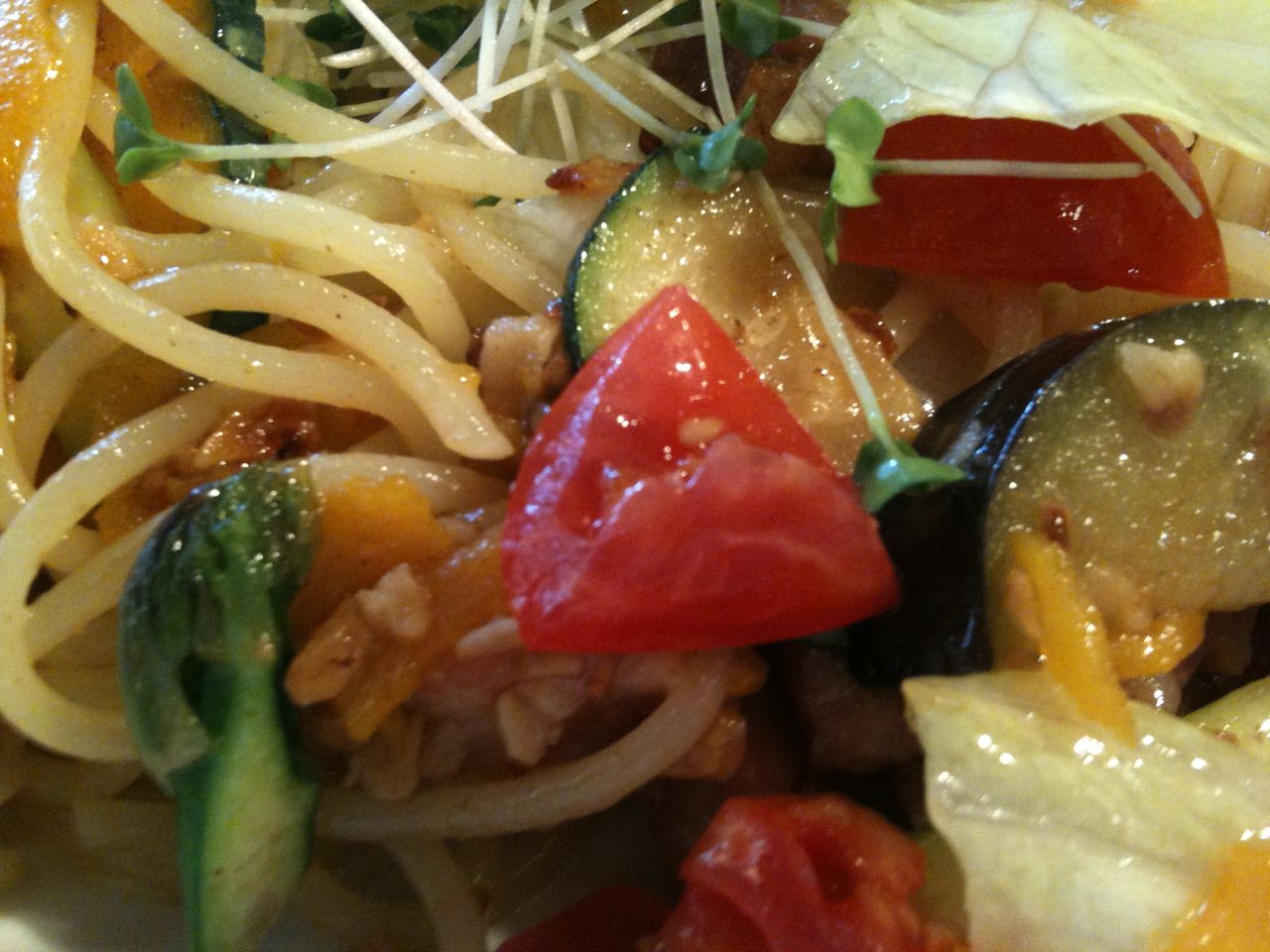 今日のランチは夏野菜のパスタヾ(´ω`=´ω`)ノ