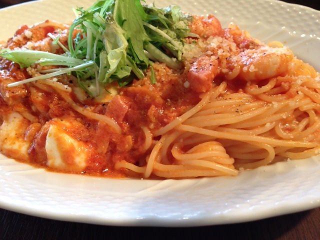 エビとトマトクリームのパスタ 久しぶりにトマト系の🍝を食べました♪( ´θ`)ノ