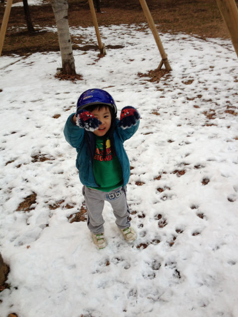 昨日降った雪で遊ぶました(*^_^*)