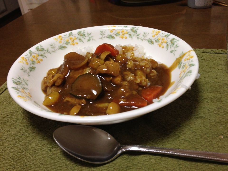 カレーなので最初は辛いんですが、サツマイモを食べるとちょっと甘いみたいな…感じです…