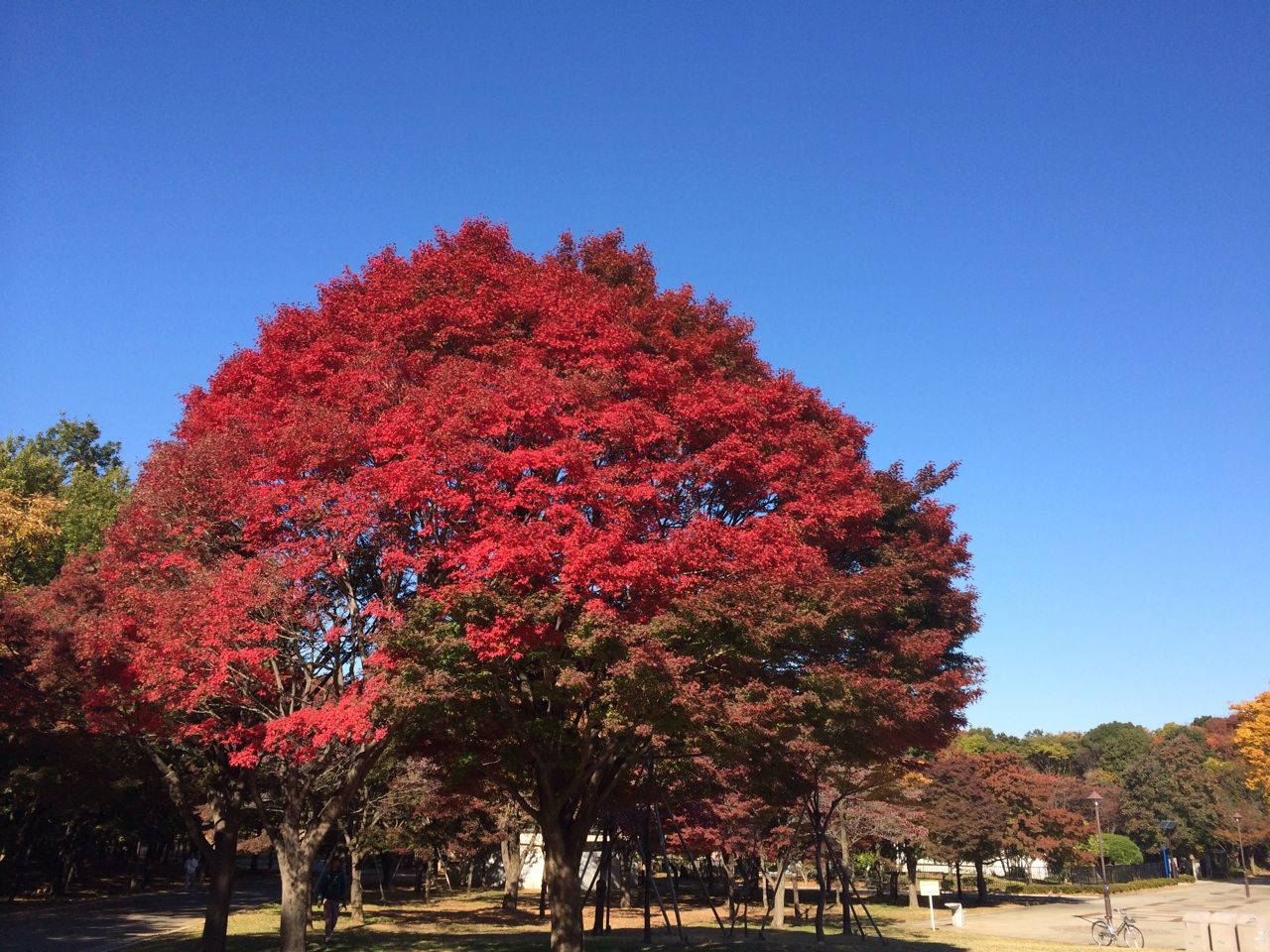 澄み切った青空に深い赤…