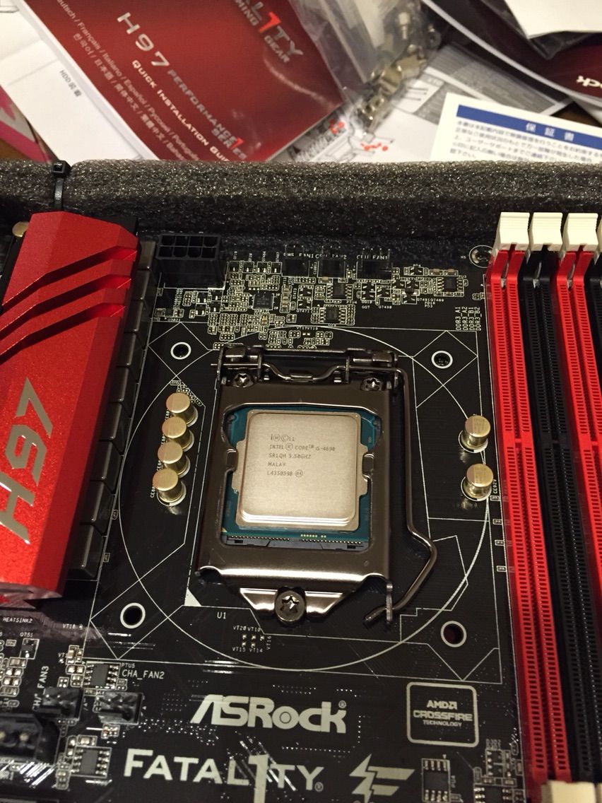 まずはマザーボードをあけてCPUをつけます。