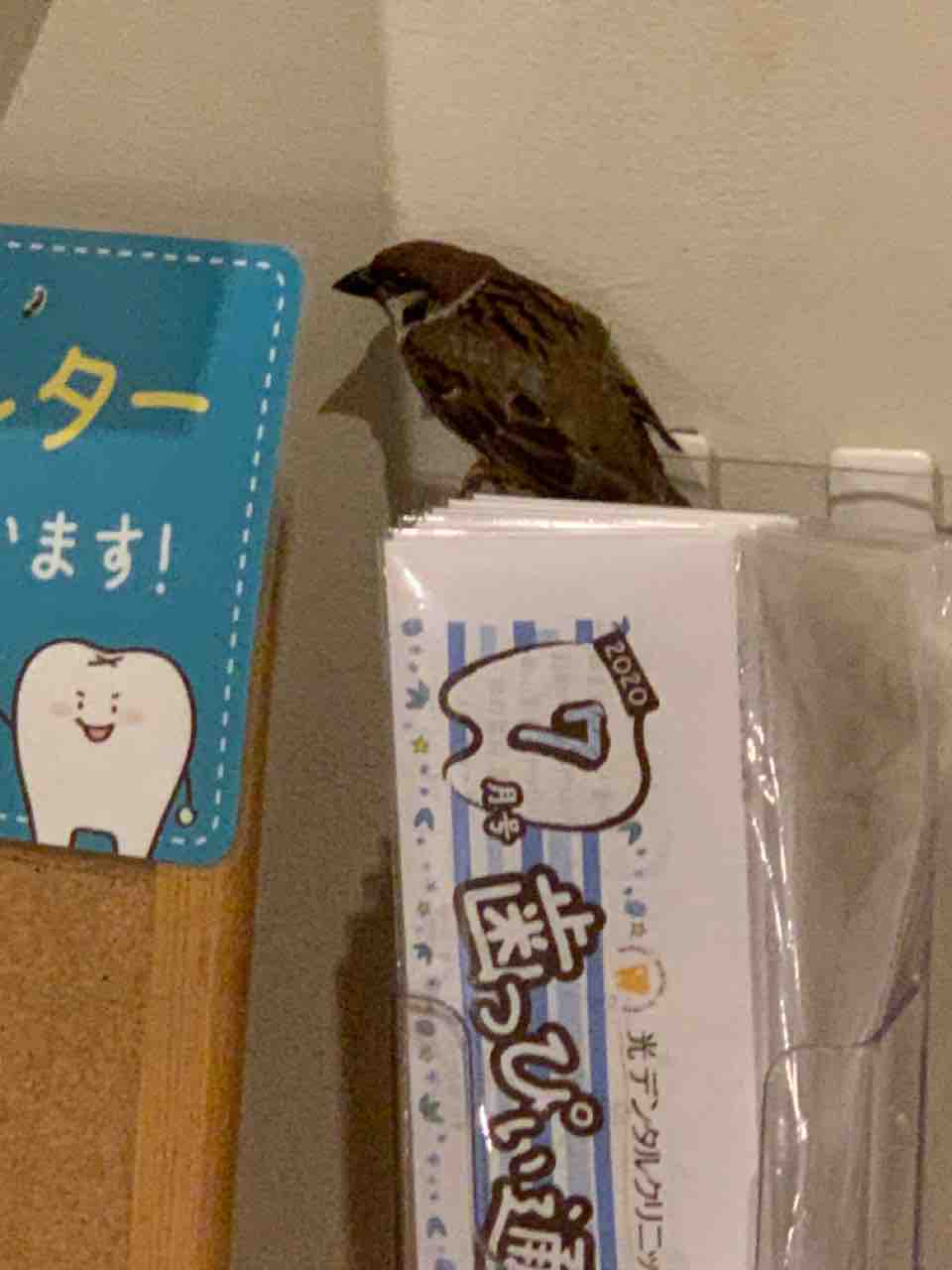 雨宿りかわかりませんが、なぜかスズメが。😅