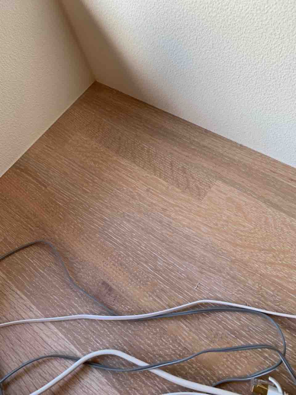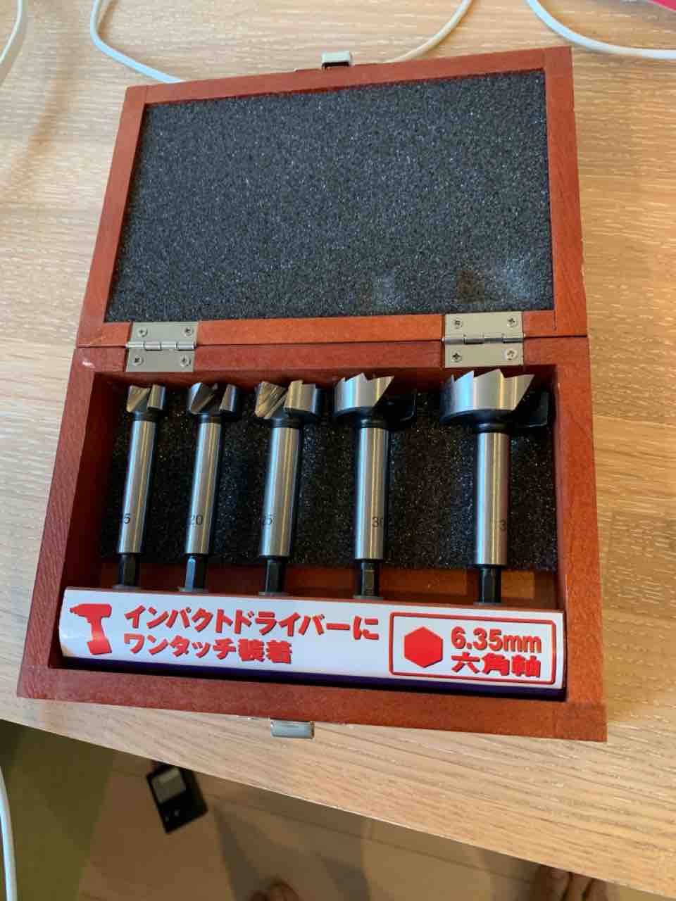 電源を置く場所が限られるので、仕方なく机に穴を開けてコードを通すことに。
