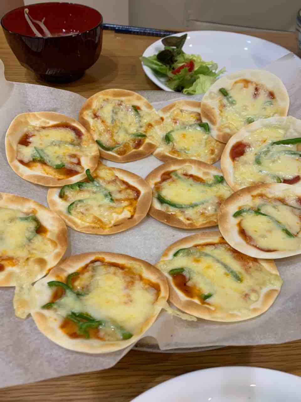 余ったギョーザの皮をもとにピザを作りました!(妻が)