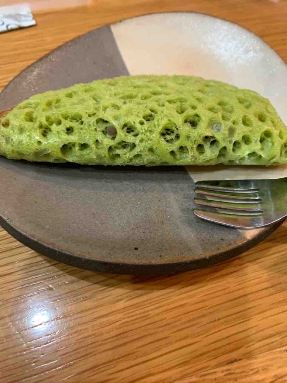 今日のお菓子は  よもぎ 中にアンが入っています♪