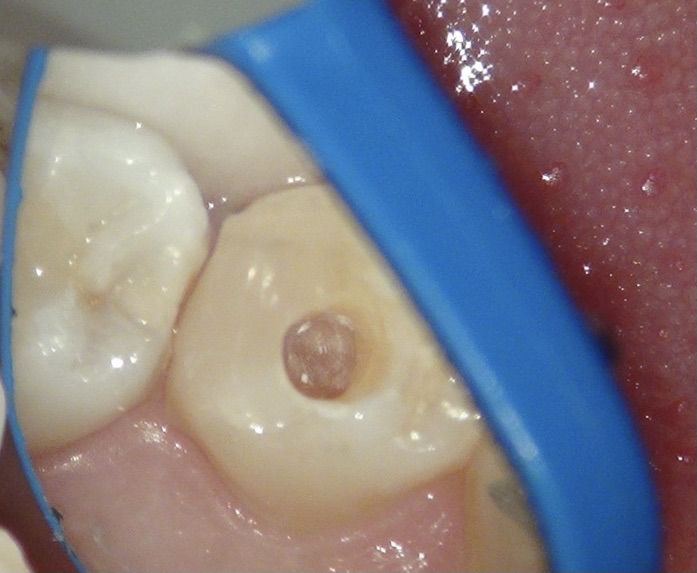 私も根管治療を終えた後、クラウン(全周歯を削って被せる)にしたくないので、上から削ることに。