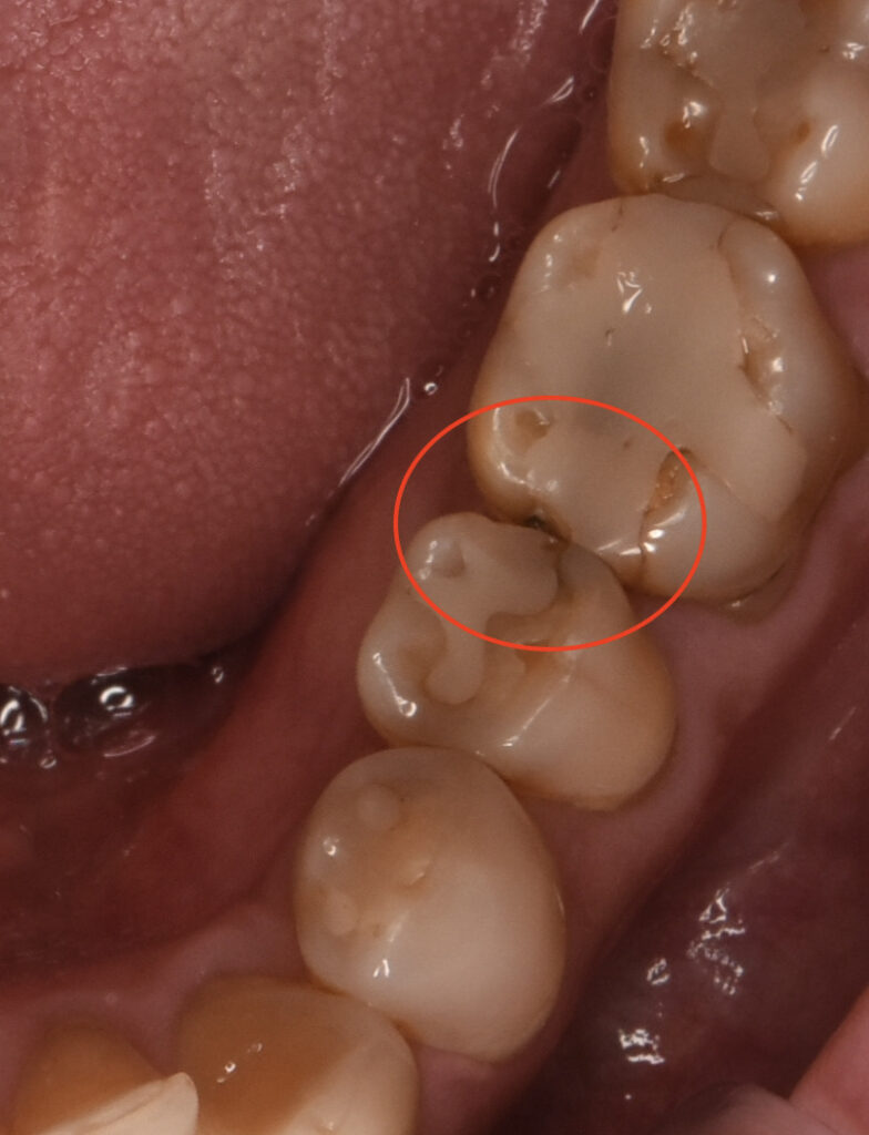 次にもし、むし歯になったり、欠けたりした場合は、クラウン(全部被せるタイプ)になるかもですが、