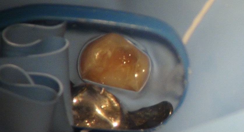 その後、ラバーダムをして、レジンを充填